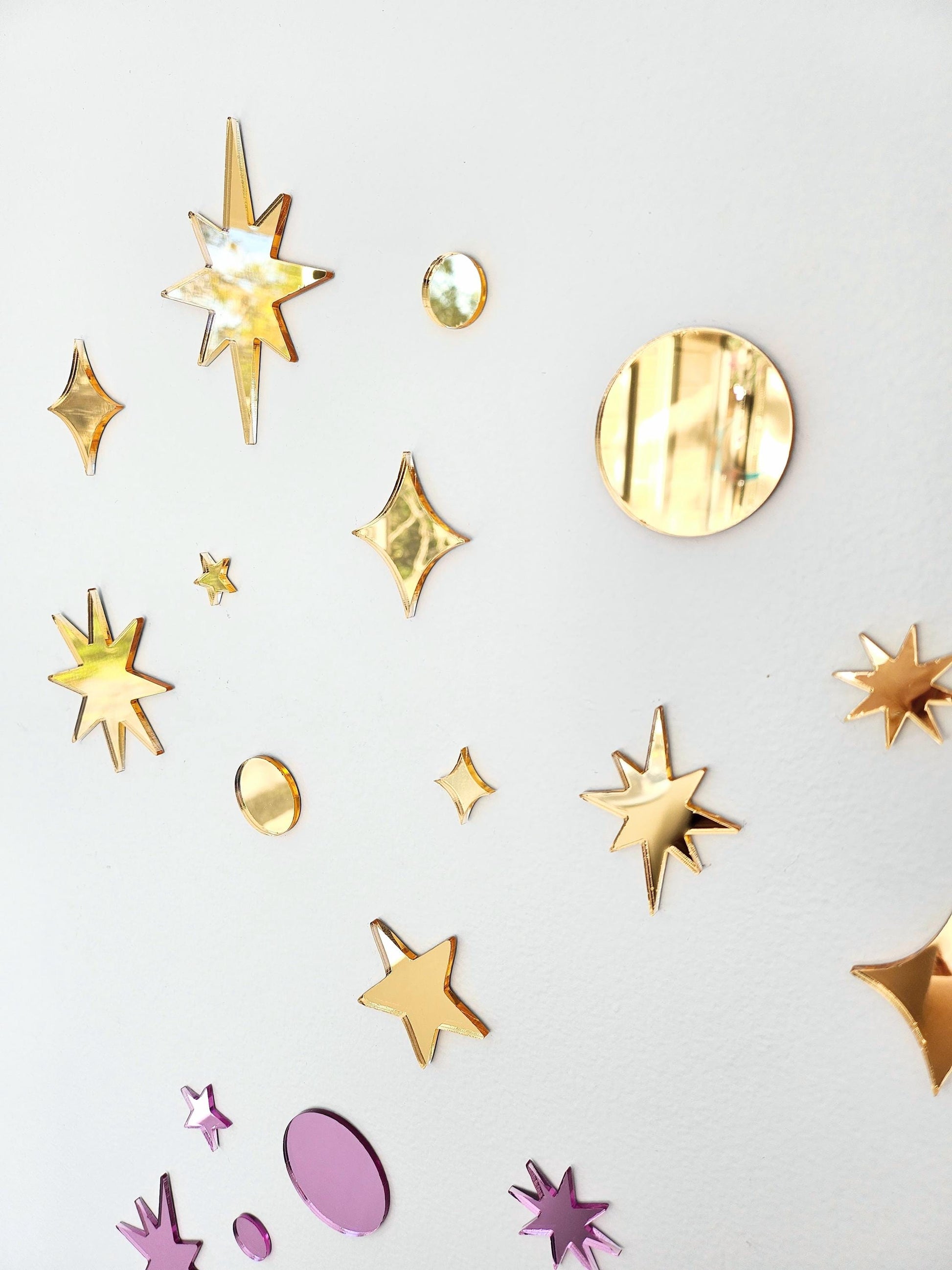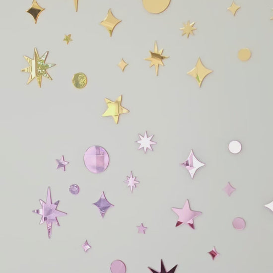 Bring a little magic to your walls with Star Dust — a 32-piece set of mirrored stars in sparkling gold, silver, pink, blue or iridescent!