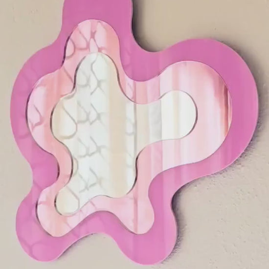 Add a playful pop of pastel pink to your space with this asymmetric, blob-shaped mirror, perfect for colourful and modern wall decor.