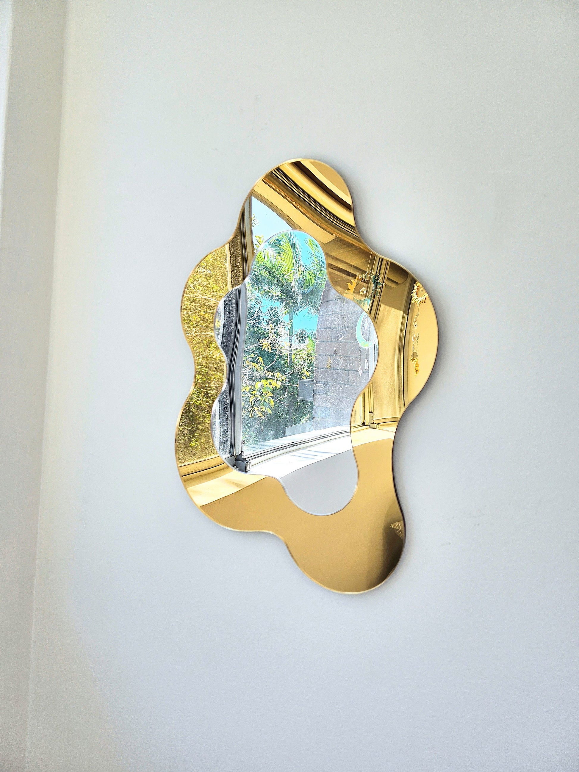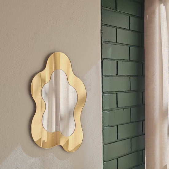 The Gold Wavy Mirror brings warmth and movement to your space — the perfect piece of unique wall art for interiors that love a little glow.